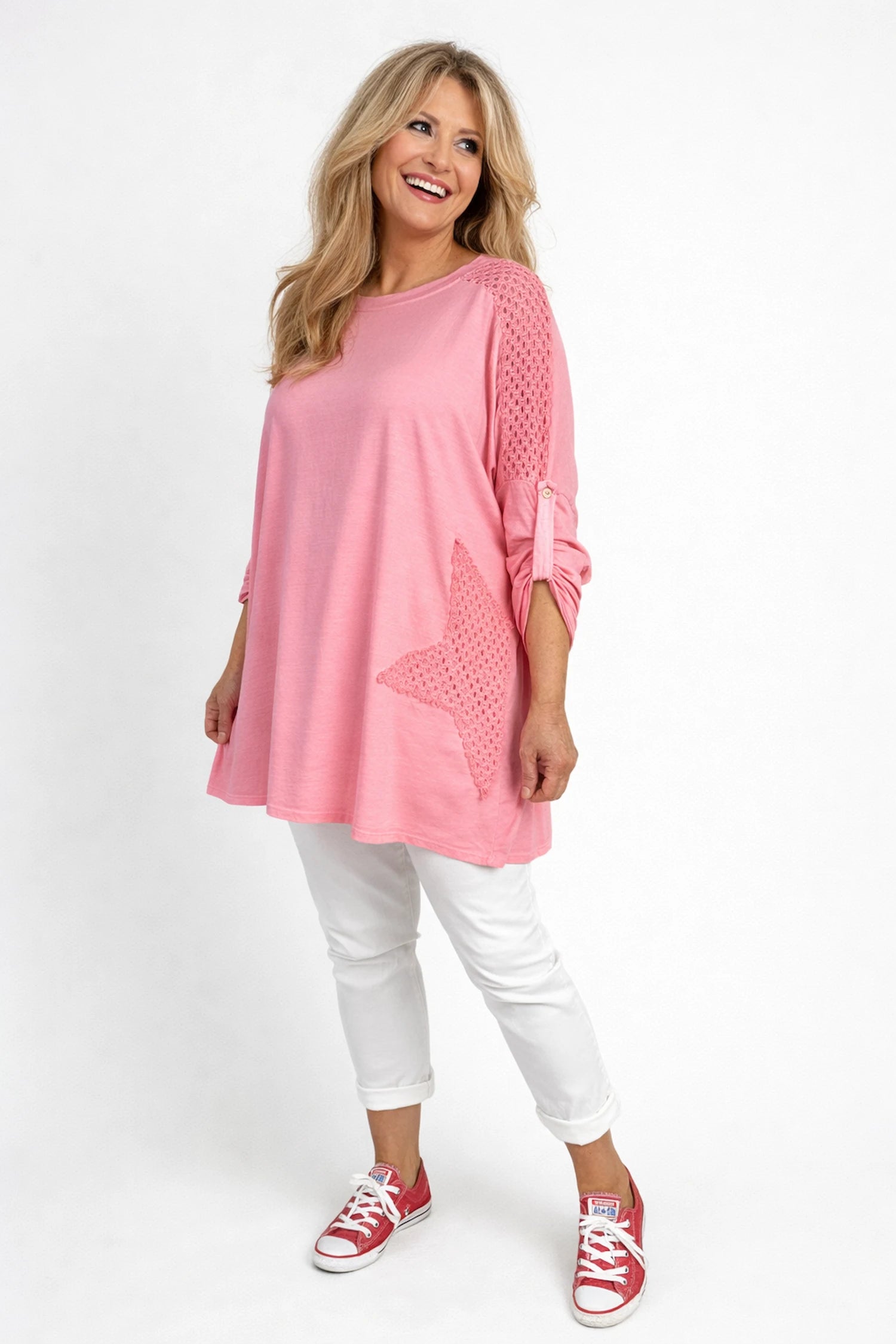 Cotton Crochet Detail Charmaine Button Sleeve Top - Coral Pink