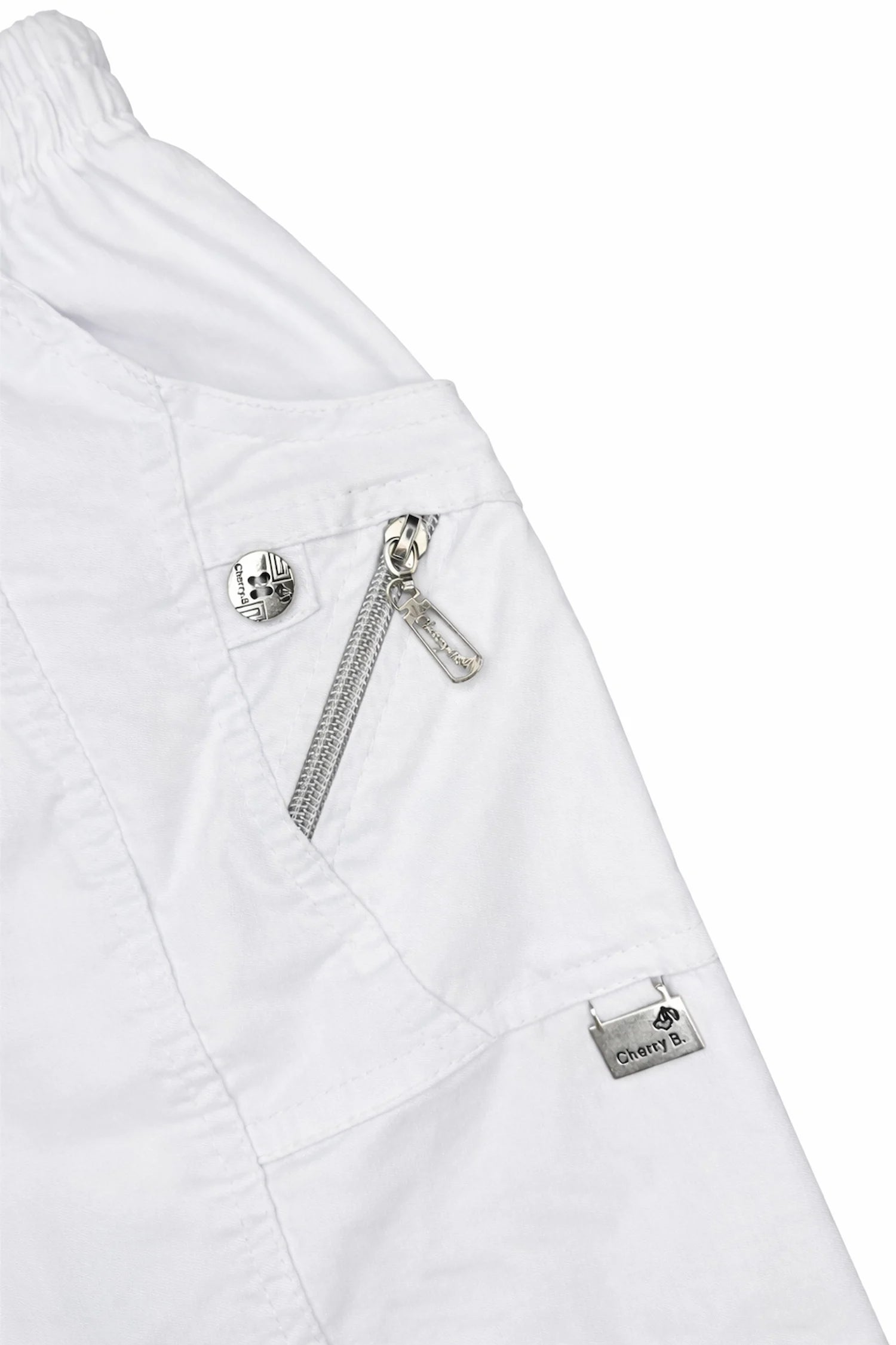 Cotton Double Zipped Pocket Cherry Berry Pants - White