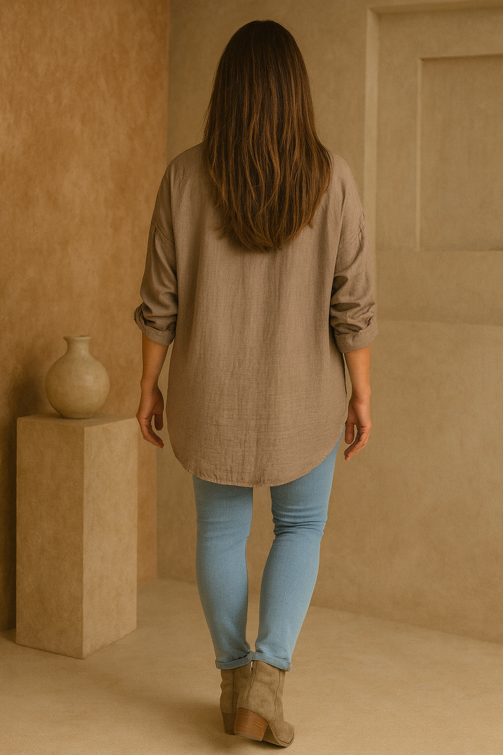 Premium Stitch Diamanté Leopard Celeste Button Sleeve Shirt - Mocha
