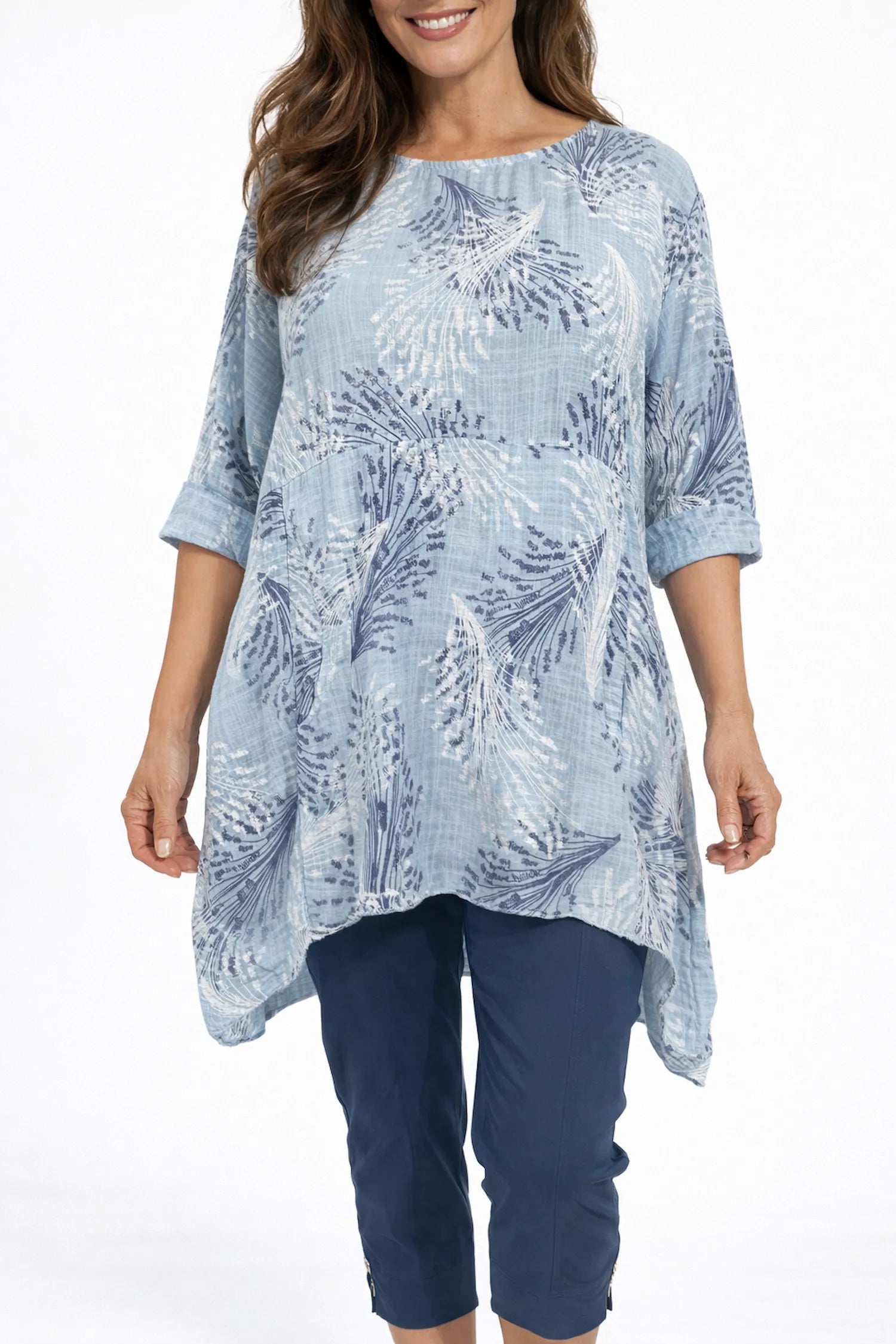 Pure Cotton Double Pocket Violetta Tunic Top - Light Denim