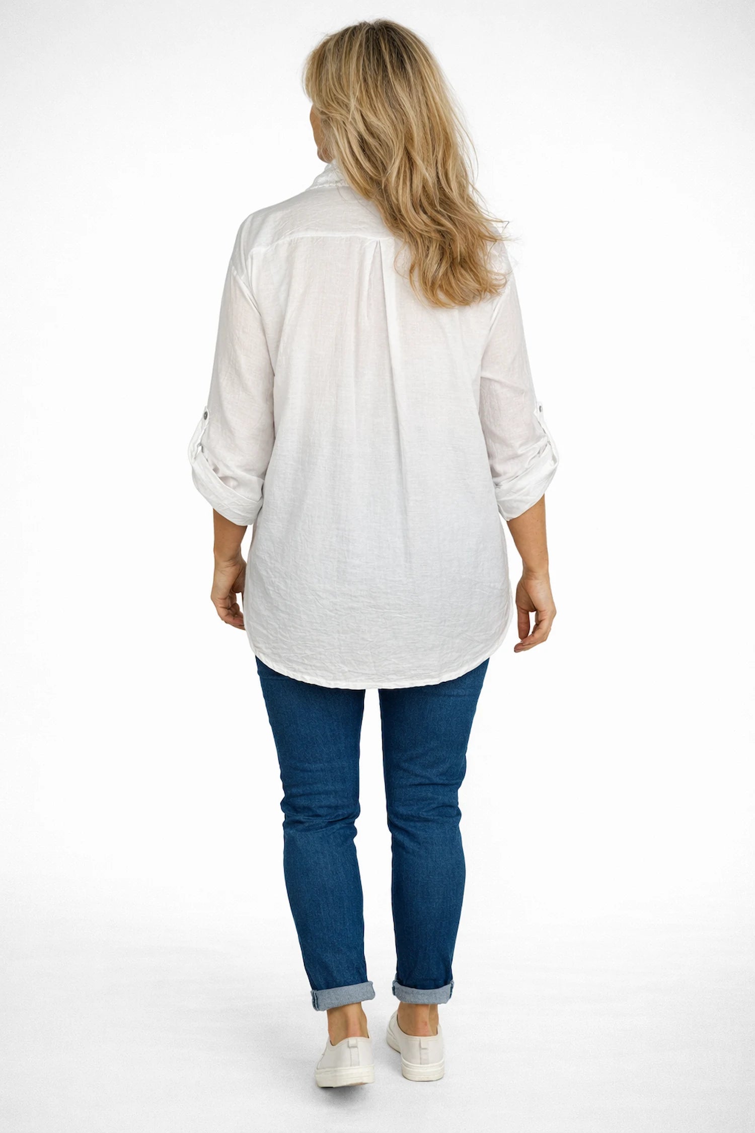 Pure Cotton Embroidered Flower Button Sleeve Valentina Button Shirt - White