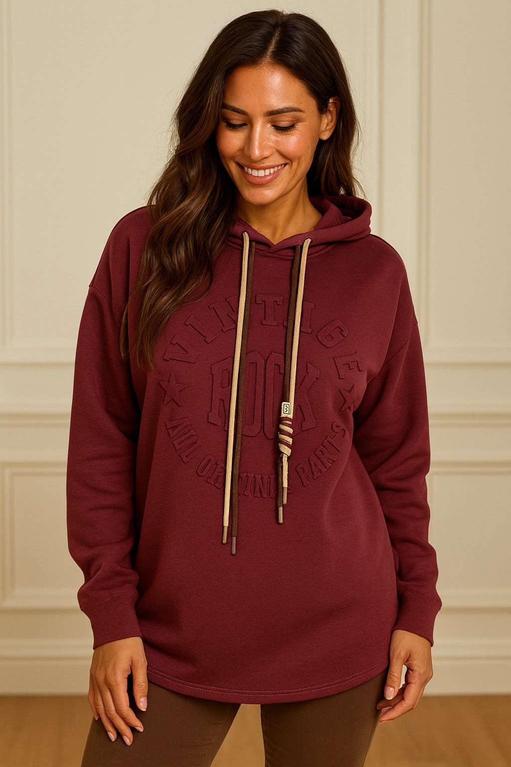Vintage Embossed Double Drawstring Lightweight Hoodie - Wine